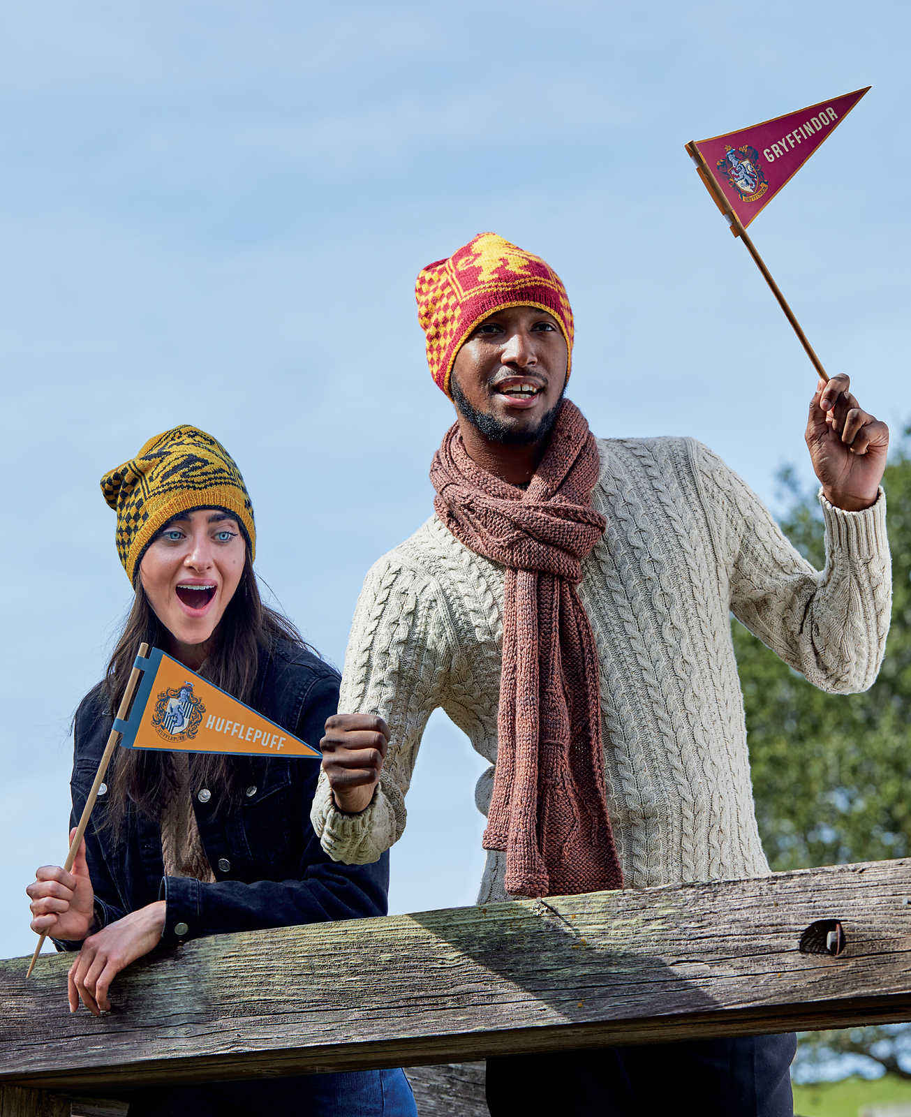 SWEATERS TO SCARVES AND MORE: Knit an amigurumi Pickett, a Hogwarts Quidditch Sweater, a pair of Marauder’s Map–inspired socks, and many more clever creations.