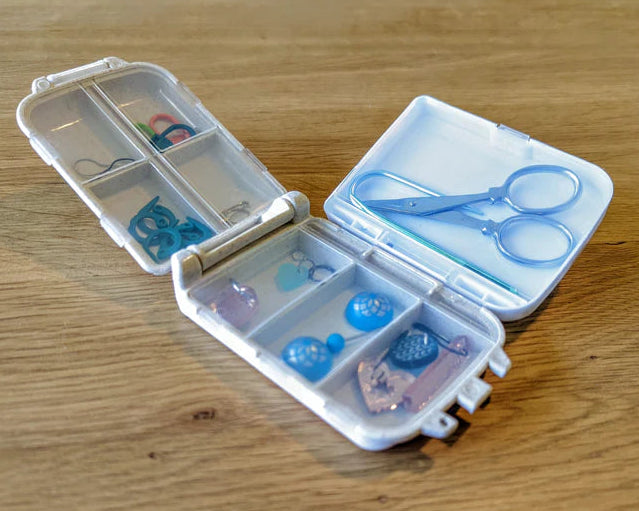 This fold up, compact organizer is perfect for your small notions. The case latches to keep contents securely inside and has 8 clever compartments to keep everything tidy. Available in 4 colors!