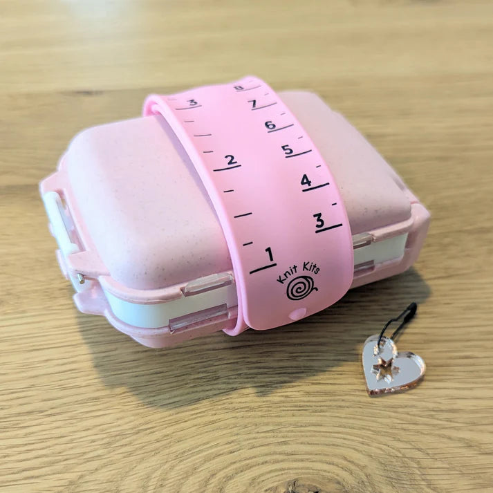 Image by Knit Kits. Stitch markers & other notions not included. Pink case shows the Sock Ruler which is also available separately.