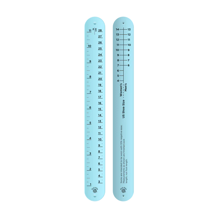 These sock rulers make sock knitting a snap! With shoe sizes on one side (with negative ease already calculated) and inches and centimeters on the other side, they'll work for all your measuring needs.