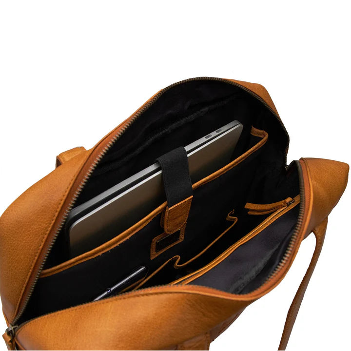 This shoulder bag can accommodate your daily essentials, with plenty of room and pockets for your laptop, phone, and other personal items. The adjustable shoulder straps provide comfort and convenience, while the top handles allow for multiple carrying options. Available in Saddle Tan leather.