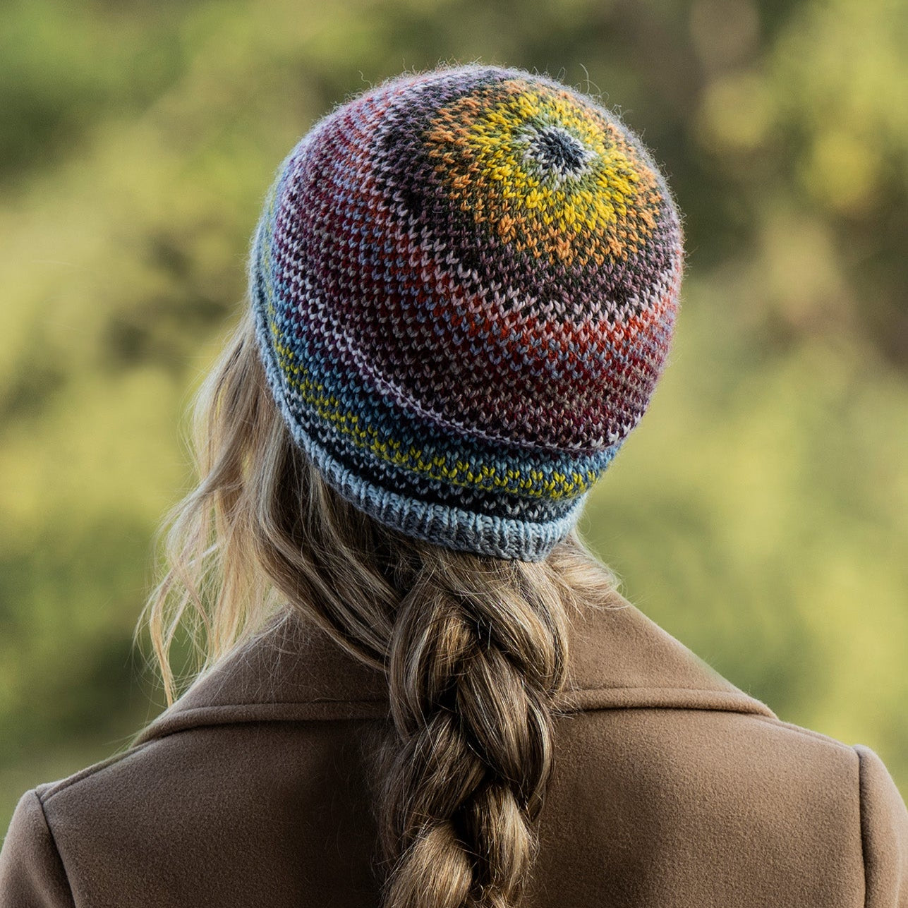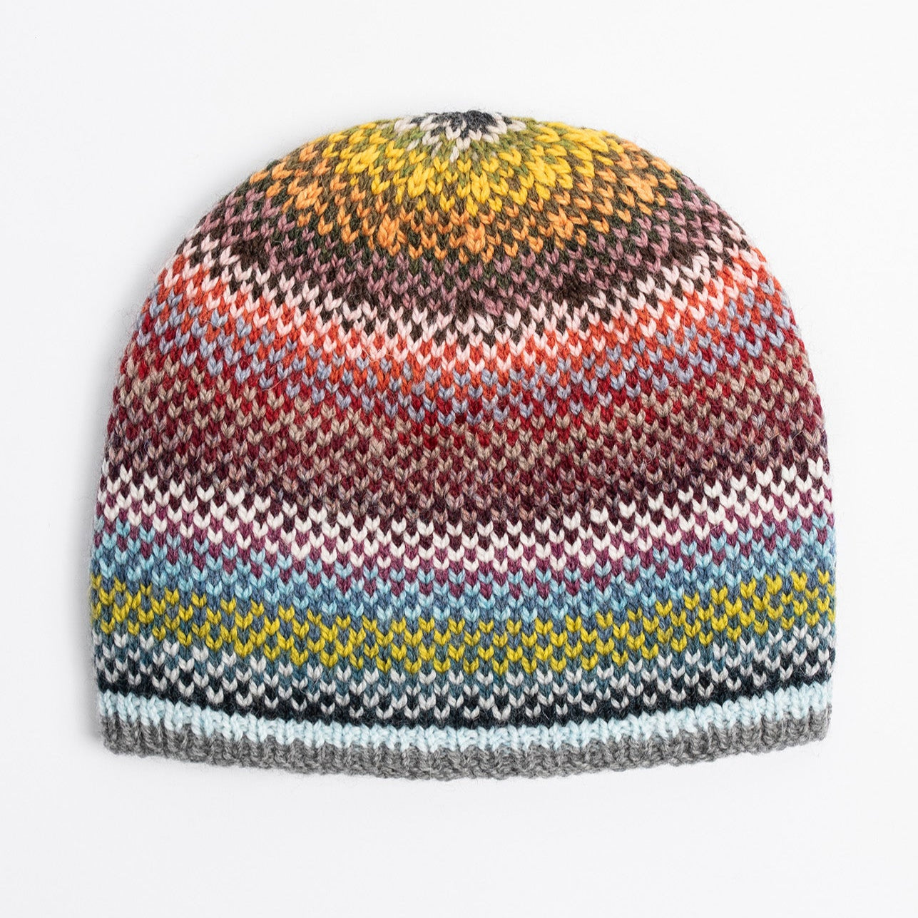 This colorful and textured hat is knit in the round with small sections in every single color of Woolstok.