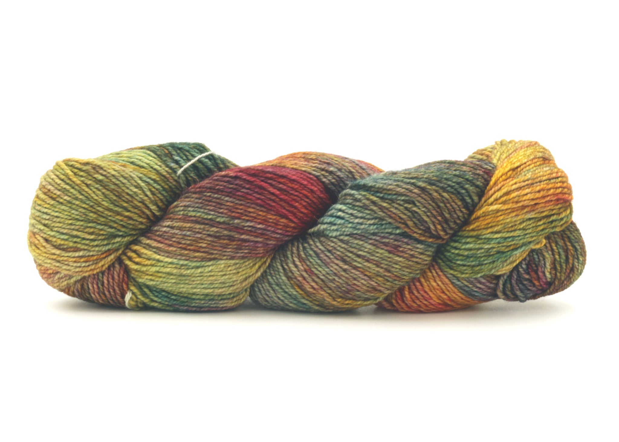 Archangel - highly variegated yarn fading from purple to red, pink, blue, & yellow. There are no greens in Archangel. Each skein is unique.
