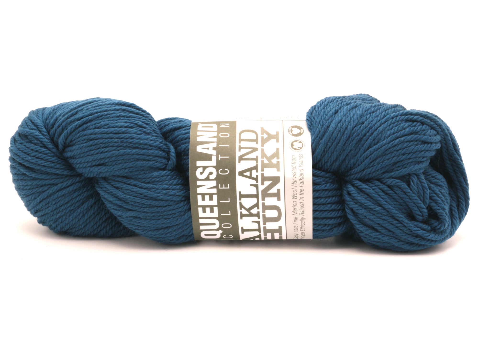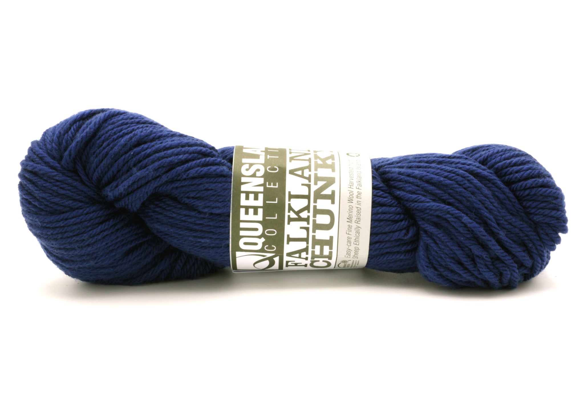 DESIGNER RECOMMENDED YARN: Falkland Chunky by Queensland Collection (100% Falkland Island Wool; 100g/131 yds): 8 (9, 10) Skeins.  Shown in Ivory.  This organic bulky weight yarn comes from the famed Falkland Islands, known for its humane treatment of sheep, their pristine fleeces and the resulting soft yarn.  Falkland Chunky is an easy care yarn that uses GOTS certified processes to prevent felting without the harsh chemicals or plastics used to make superwash yarn. PRE-ORDER now available in all colors.  Please allow at least 7 business days for your pre-order to arrive at your location.