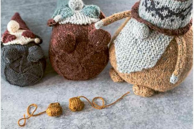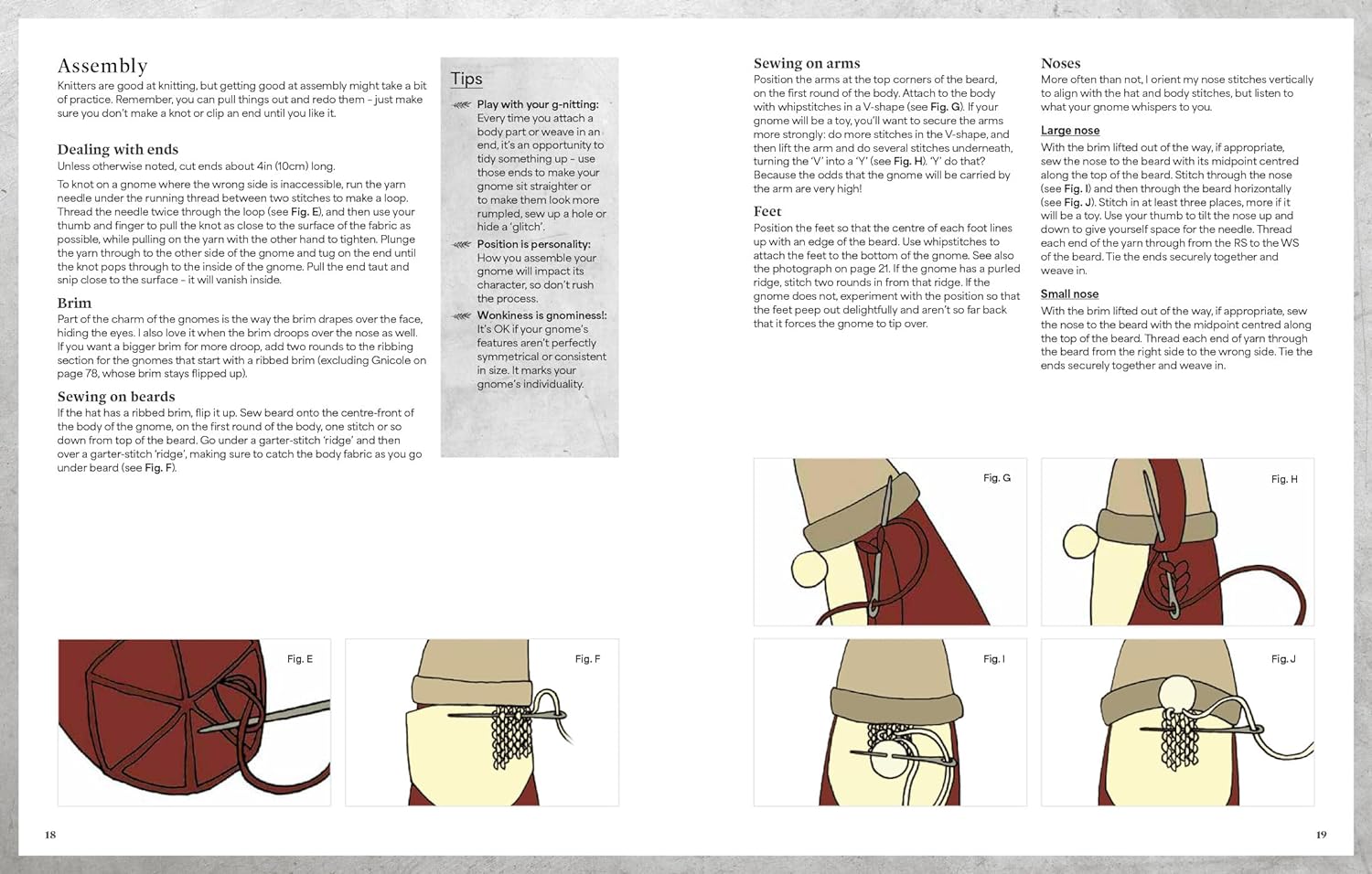 Suitable for confident knitters, the book contains all the necessary colorwork and cable charts, along with Sarah’s ‘Chart of Everything’: the ultimate guide to calculating the yarn weights you need for each and every gnome. Discover how to block, stuff and assemble your gnomes to create their distinct personalities. Then, grab your needles and necessities and knit 8 of gnomes that live in the mystical forest of Grimblewood!