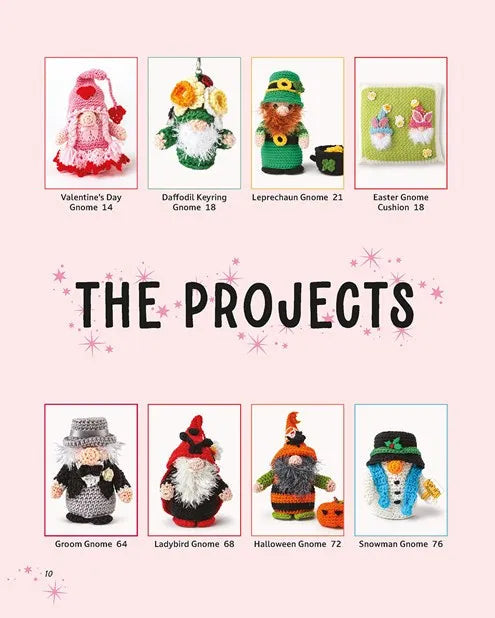 Choose from 20 different projects for a range of occasions throughout the year. Each gnome has an average height of between 5.5-6.5in, but there is also a smaller keyring and larger pillow projects, too. These friendly little gnomes are the perfect way to make use of your yarn stash. With a short and sweet techniques section to get you started, you’ll be filling up your home with cheeky bearded friends in gnome time!
