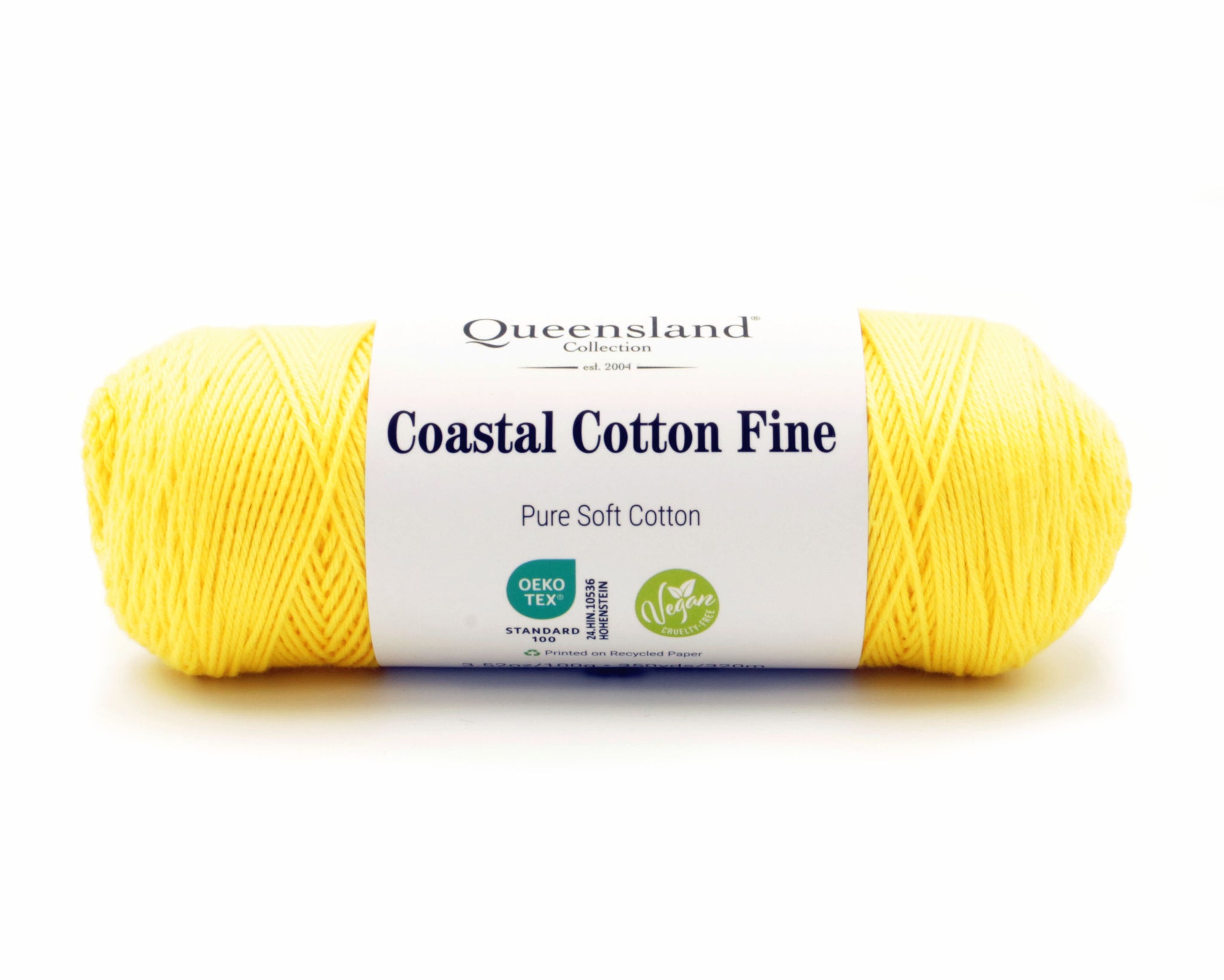 This sport weight, cotton yarn from Queensland Collection is available in a wide range of pastel and bright colors. Made from 100% cotton, this yarn boasts a soft and lightweight texture, perfect for creating delicate garments and accessories that breathe with the gentle caress of a coastal breeze. Coastal Cotton Fine has excellent stitch definition and is perfect for intricate lacework or airy shawl. OEKOTEX Standard 100 rating. Cruelty Free.